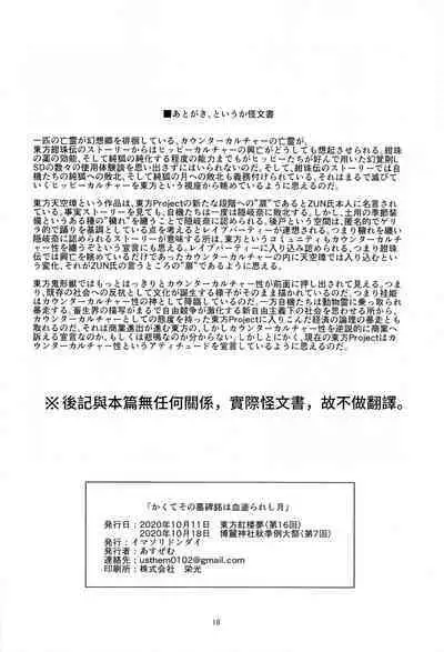 (Kouroumu 16) [Imasori Dondai (Us Them)] Kakute Sono Bohimei wa Chinurareshi Tsuki (Touhou Project)