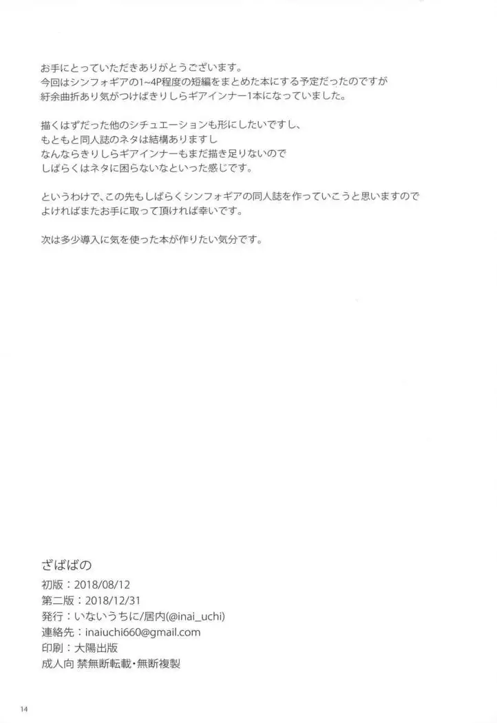 (C95) [Inai Uchi ni (Inai)] Zababa no (Senki Zesshou Symphogear)
